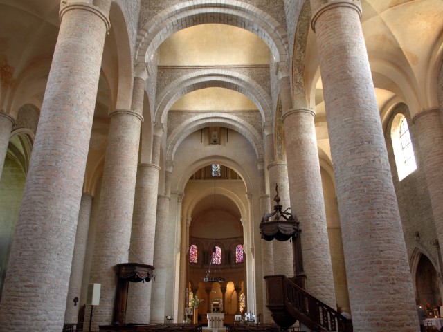 De abdij straalt kracht en majestueusiteit uit. De gevel van de abdijkerk lijkt op een fort. Alleen de rij met bogen en de klokkentoren verzachten het beeld. Bij binnenkomst vallen het ruwe en simpele metselwerk en de vier enorme pijlers op. De gewelven zijn ruim 18 meter hoog. De lichtinval is prachtig dankzij de unieke architectuur van het middenschip. In de kooromgang zijn Romeinse mozaïeken uit de 12e eeuw ontdekt die de maanden en de tekens van de dierenriem uitbeelden. De crypte, met de tombe van de martelaar Saint Valérien, is het oudste deel van het gebouw. Vergeet niet om de kapel Saint-Michel, boven het voorschip, te bekijken.