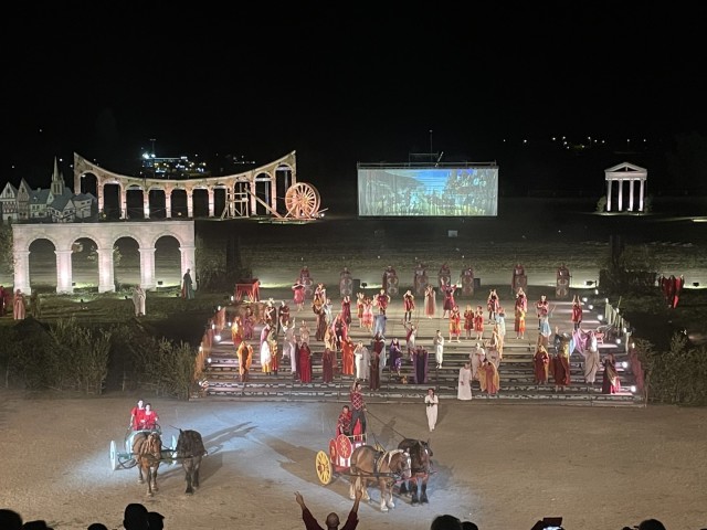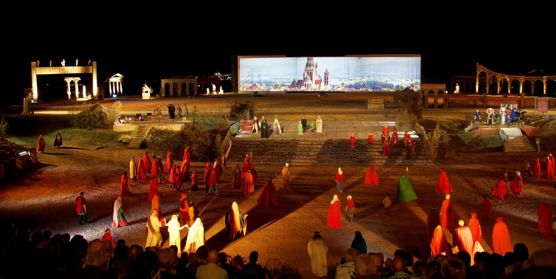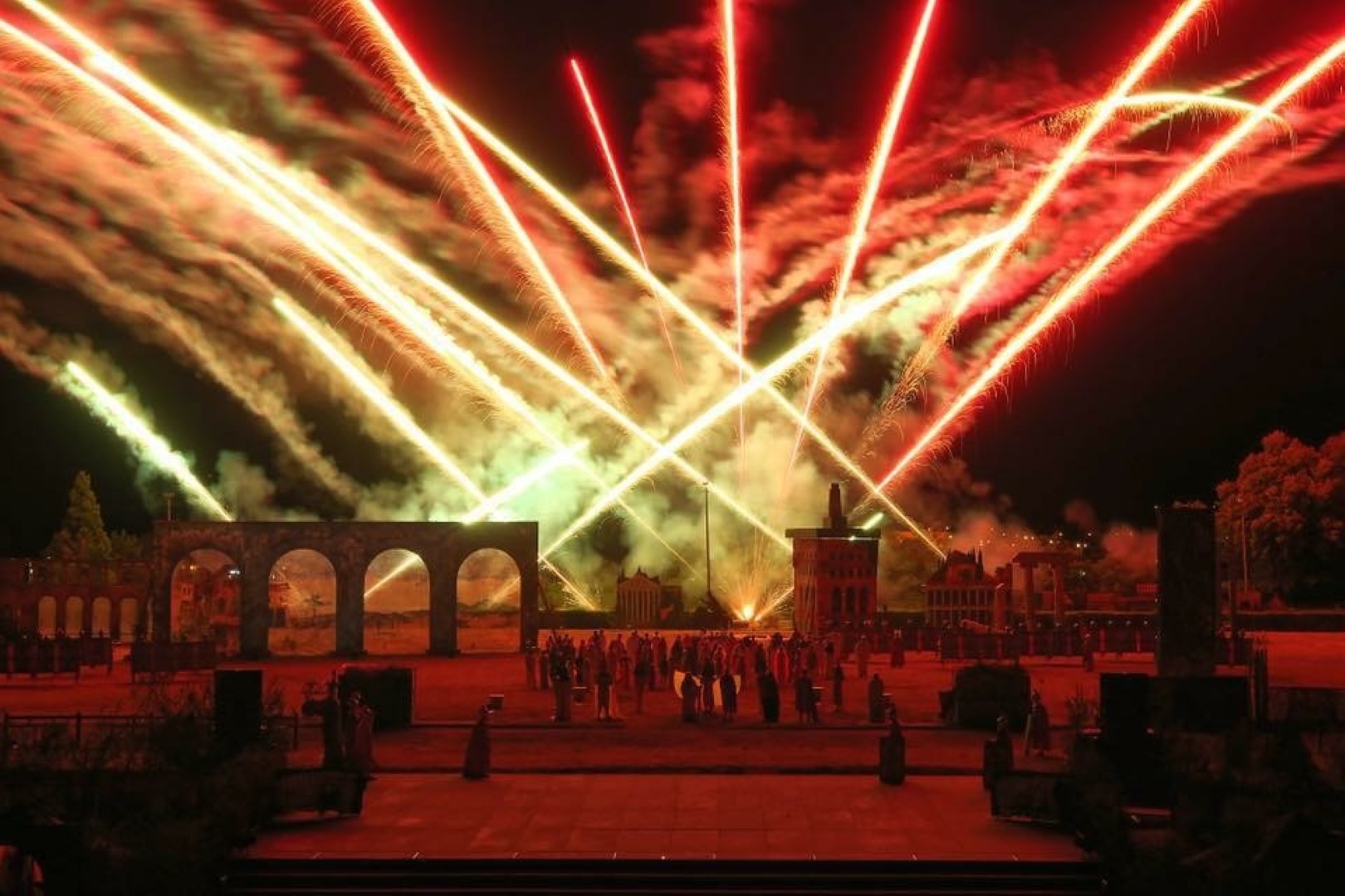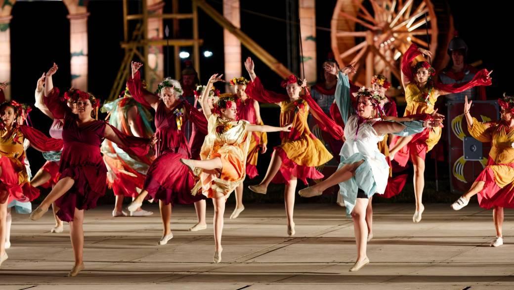 Honderden gekostumeerde personen brengen het historisch epos van Autun, vanaf de oudheid tot de renaissance, in beeld met wagenrennen, gladiatorengevechten, dansen, vuurscènes, een riddertoernooi en acrobaten. De show, met veel licht- en geluidseffecten leidt naar de triomfantelijke aankomst van koning François in het Rome van Frankrijk. Een grandioos vuurwerk sluit de avond af.