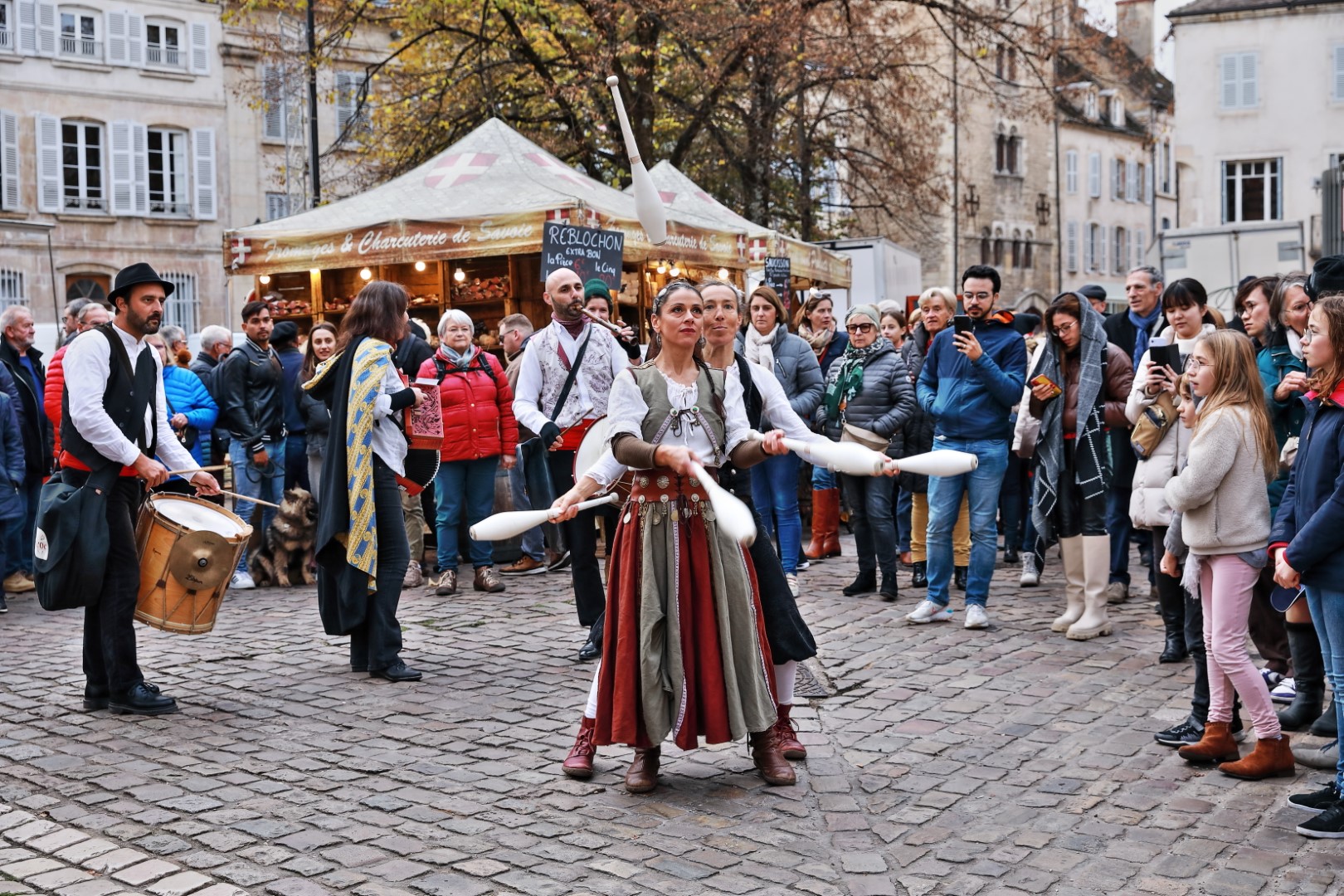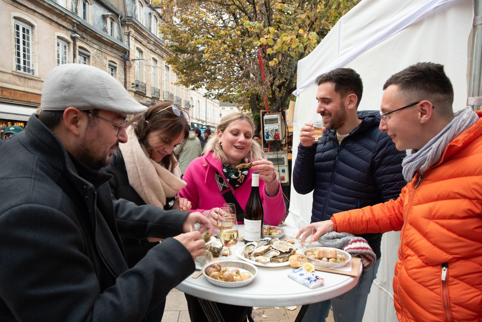 Ter plekke zijn allerlei lekkere specialiteiten uit de regio te koop zoals gougères (kaassoesjes), jambon persillé (peterselieham), escargots (slakken), en oeufs en meurettes (eieren in rode wijnsaus).