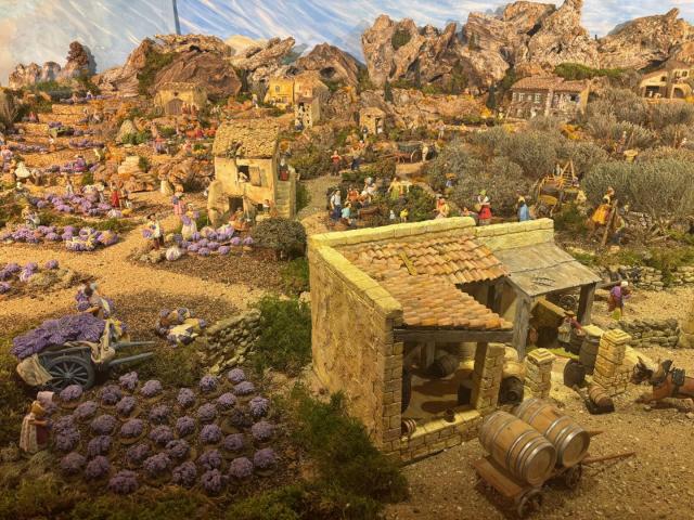 Over de kerststal die ze in de abdij maakten, zegt Arlette het volgende: “Ik haal mijn inspiratie uit de Provence, haar tradities en haar wonderen. Gepassioneerd door de rijkdommen van het Middellandse Zeegebied waar ik woon, heb ik geprobeerd een beetje van mijn Provence te delen: de landschappen, het licht en de kleuren, de oude ambachten, de seizoenen en het plattelandsleven van weleer. Bezoekers zien misschien de knipoog naar Bourgondië…” Daarmee verwijst ze naar de Charolais koeien die vredig in een weide grazen.