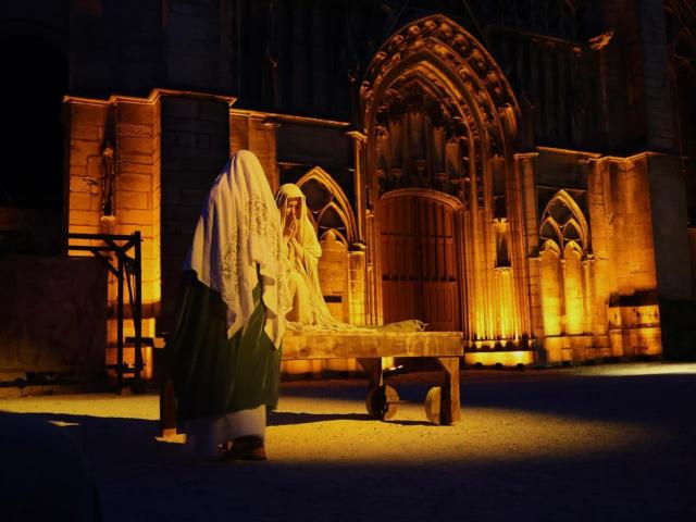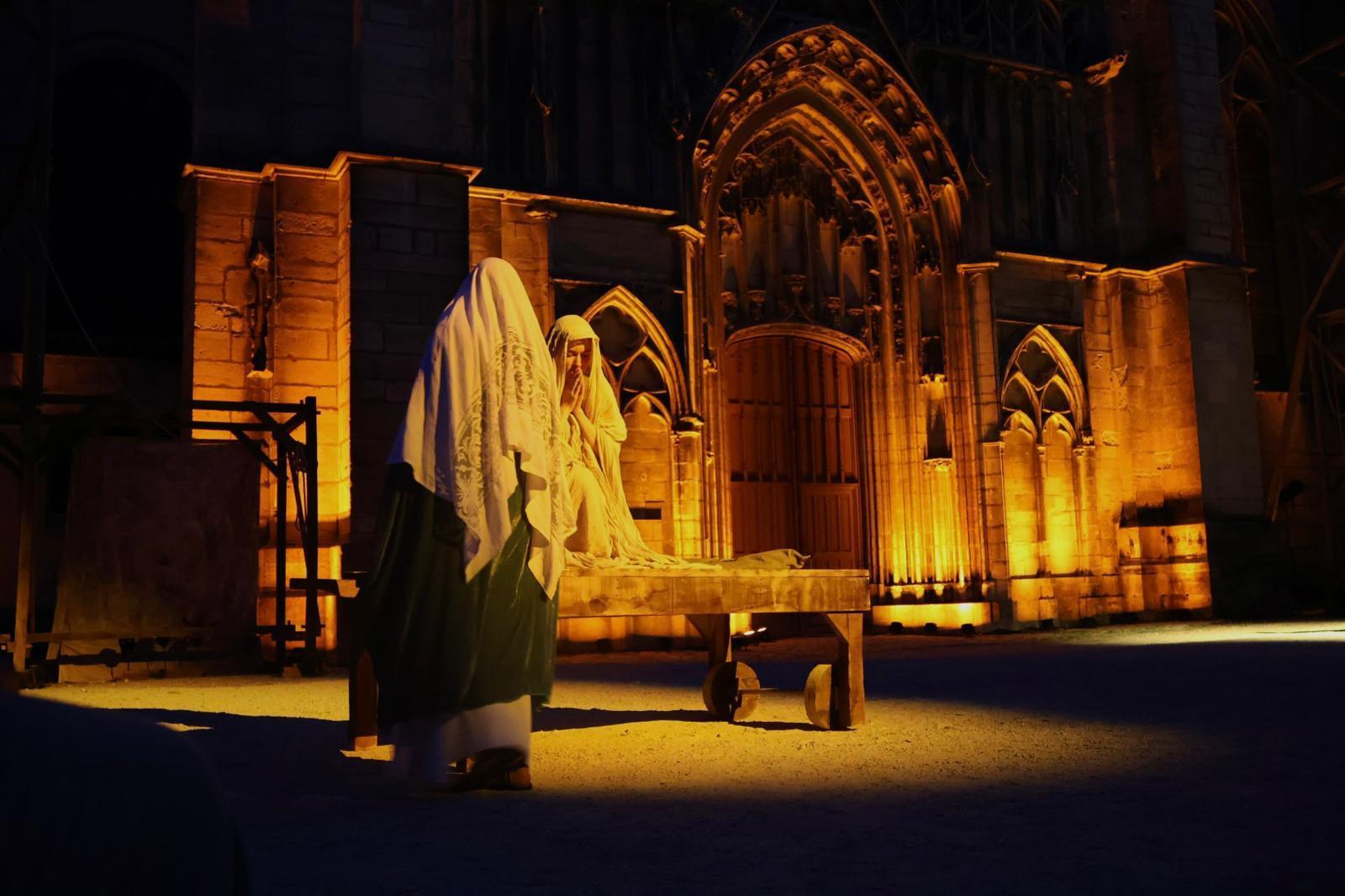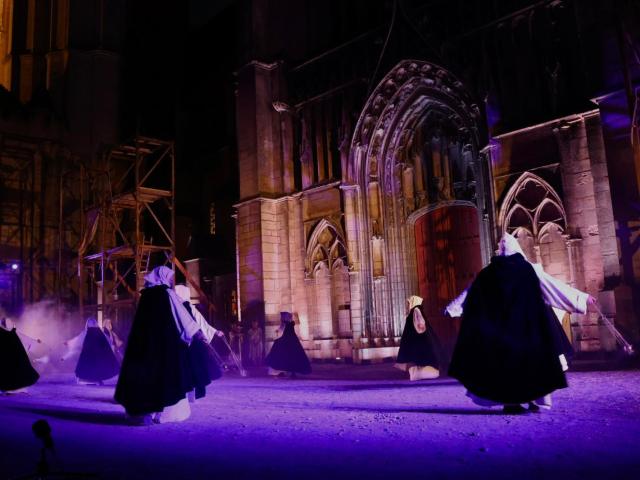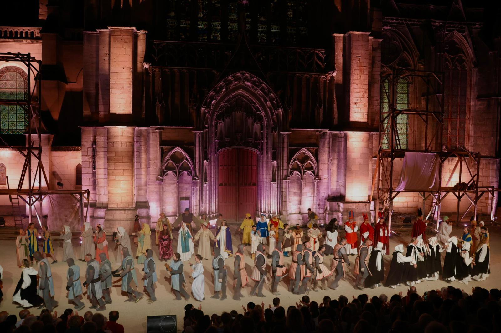 Als de nacht neerdaalt over de Saint-Etienne, komen in het licht van de glas-in-loodramen en de prachtige roosvensters van de kathedraal de karakteristieke personages uit zijn geschiedenis voorbij, afgewisseld met meer bescheiden figuren en taferelen uit het dagelijkse leven.