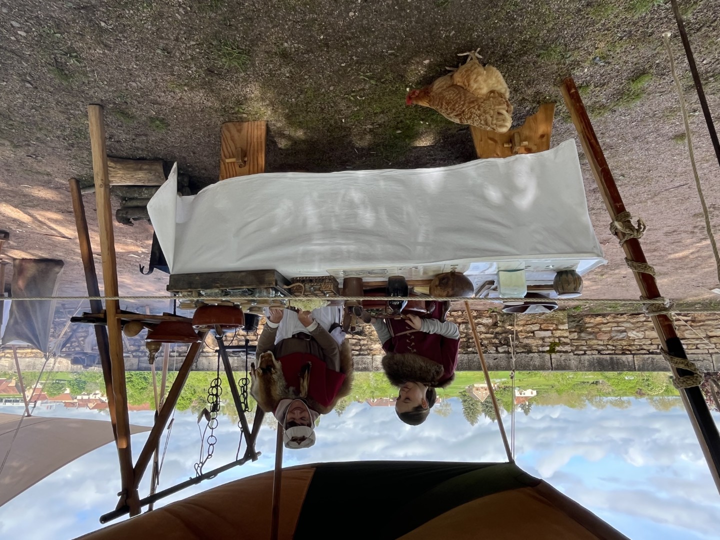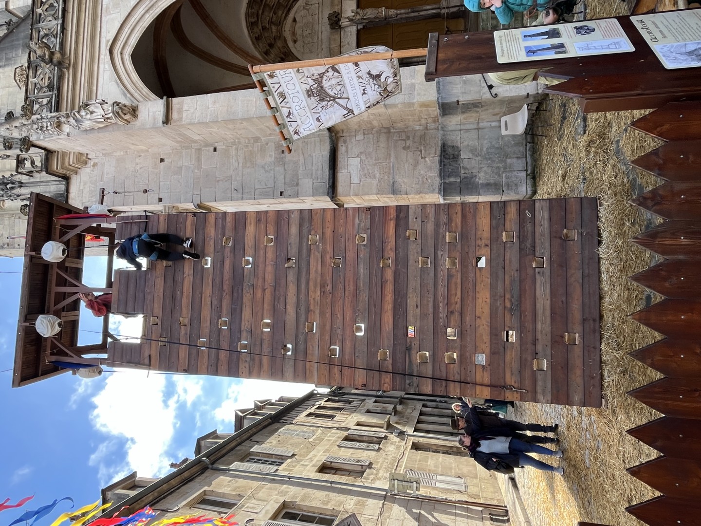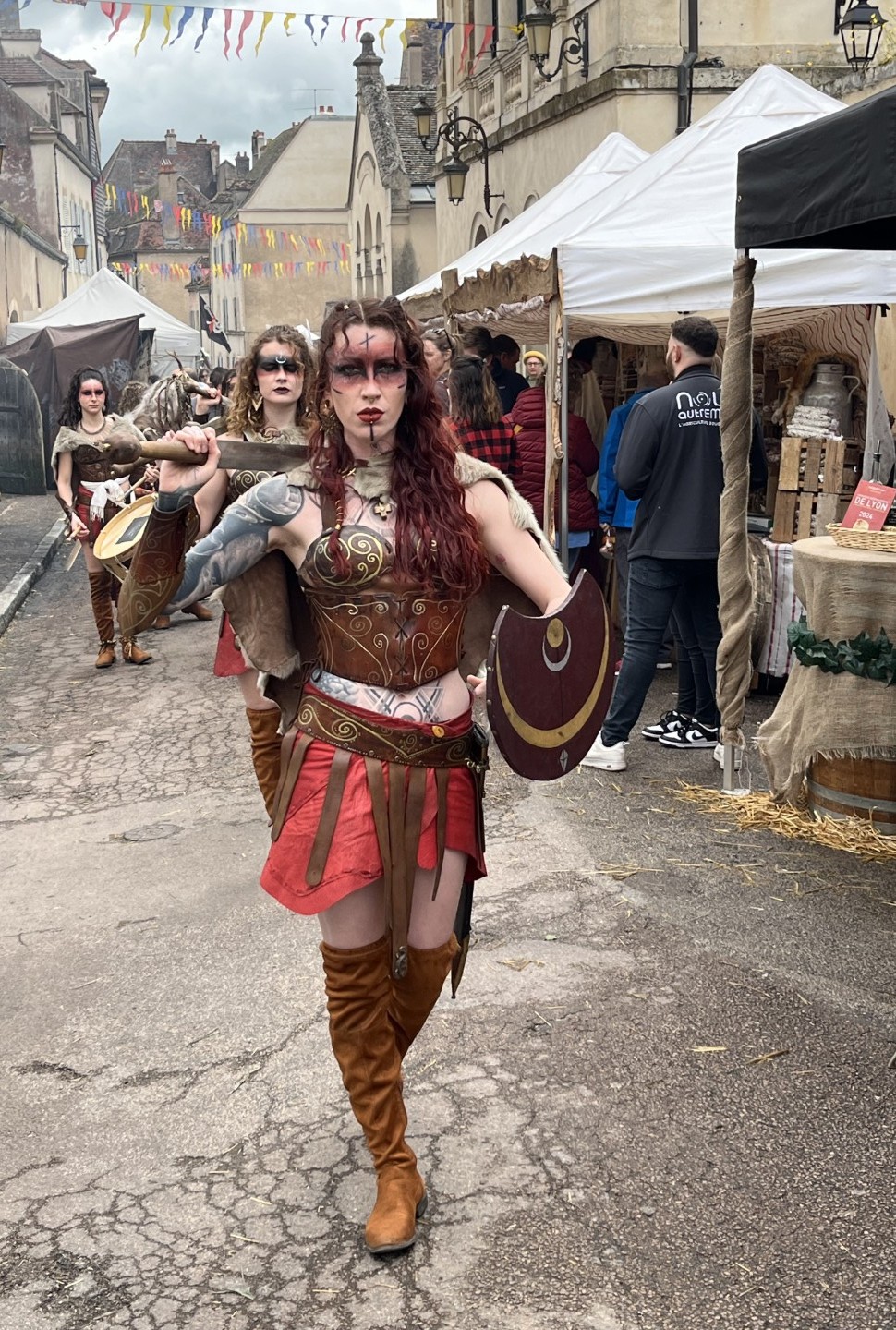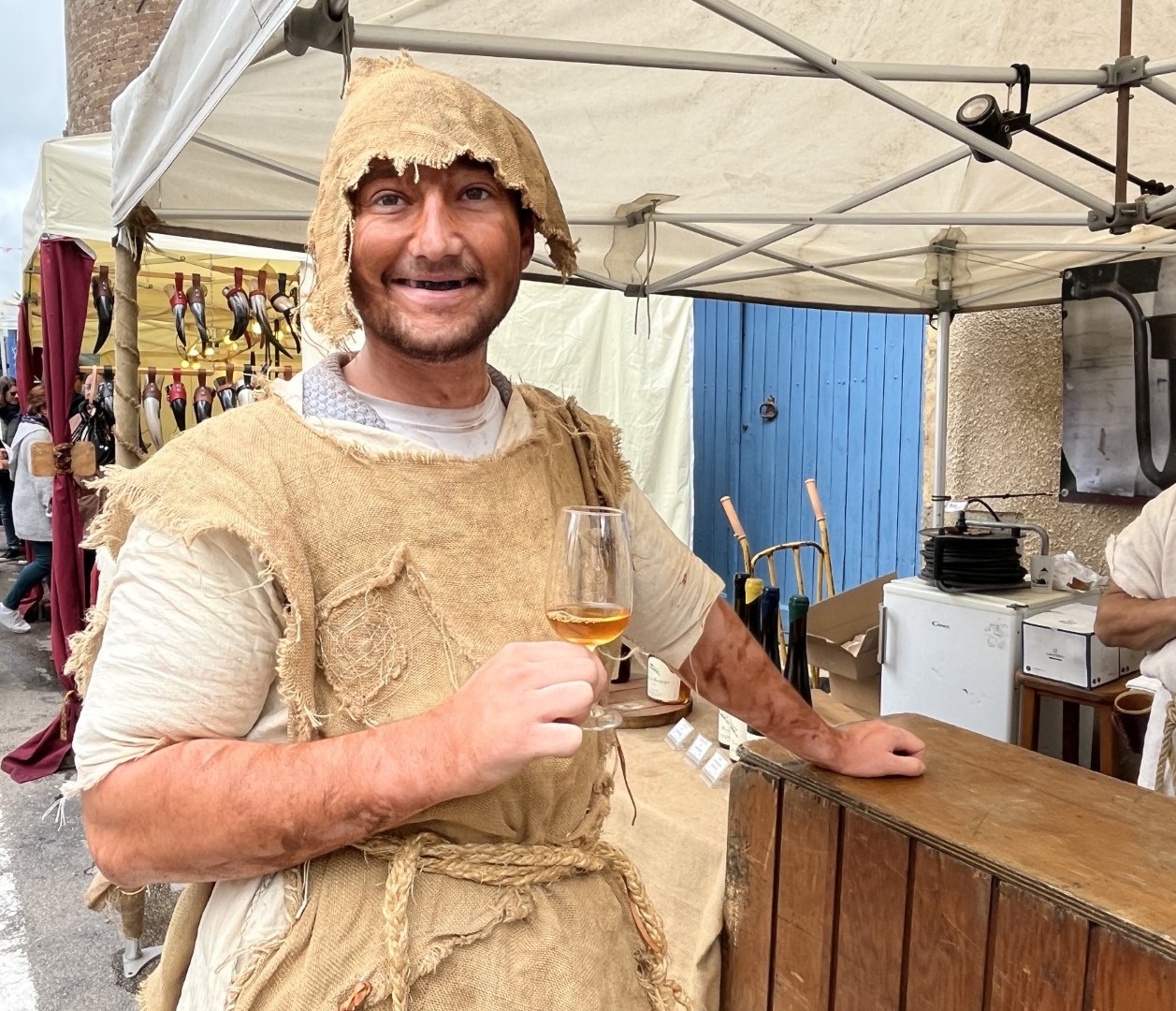 Langs de route zijn kampementen opgezet, schooien de bedelaars, kan een houten strijdtoren worden beklommen, schenken tavernes hun drankjes, en staan zo’n 80 kraampjes met koopwaar. Overal zorgen straatartiesten voor animatie.