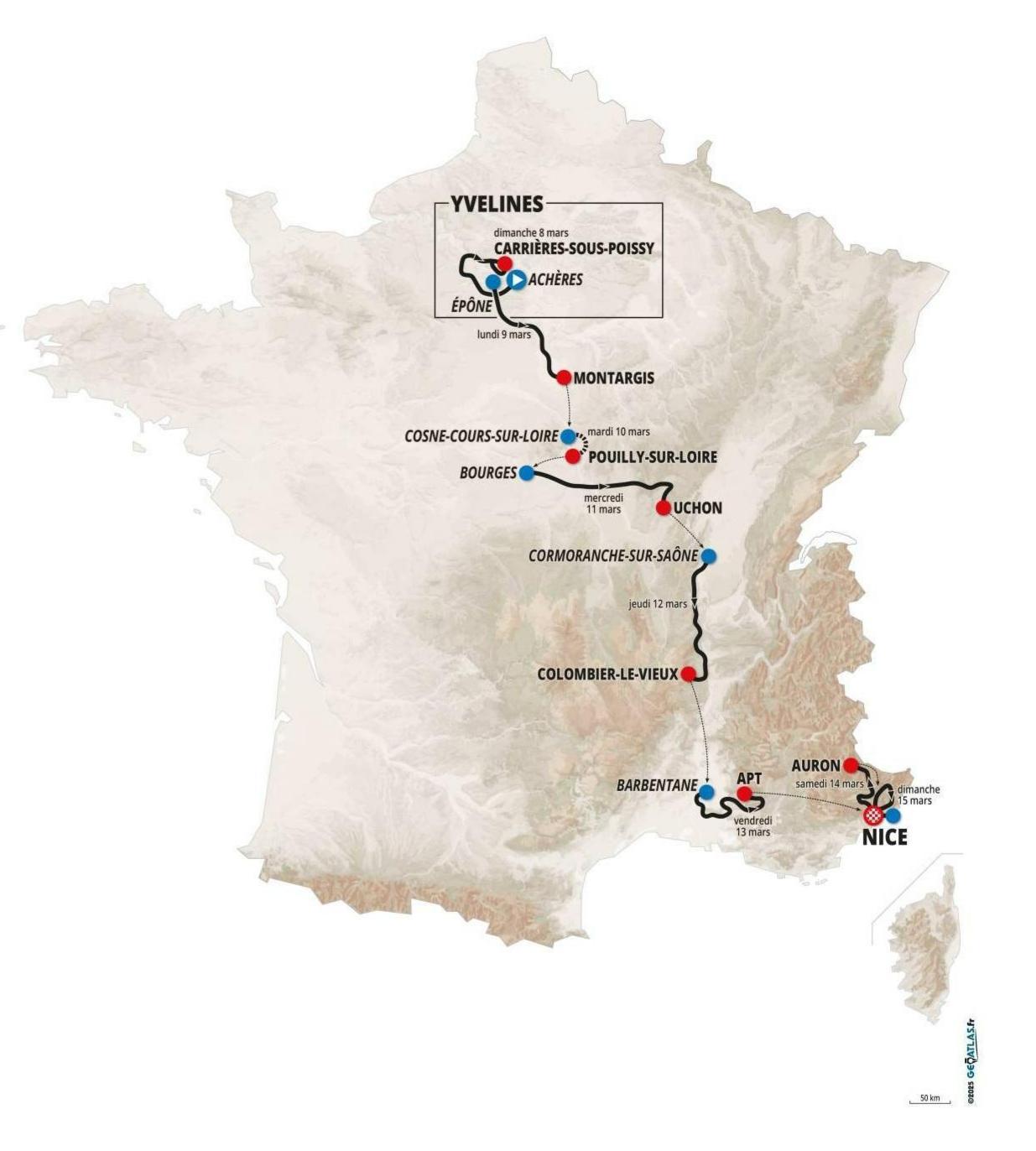 Deze 84e editie van de wielerrace Parijs-Nice start op 8 maart in Achères en eindigt op 15 maart in Nice. In 8 etappes leggen de renners ruim 1.245 kilometer af.