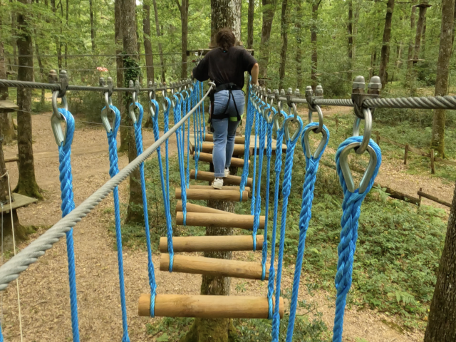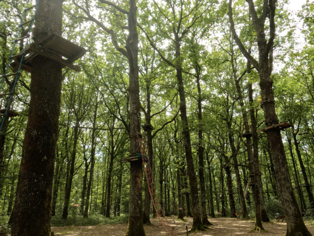 Aan de rand van de Morvan, in een bos met eeuwenoude eiken, zijn over een oppervlak van zes hectaren avontuurlijke klimroutes uitgezet door de bomen.