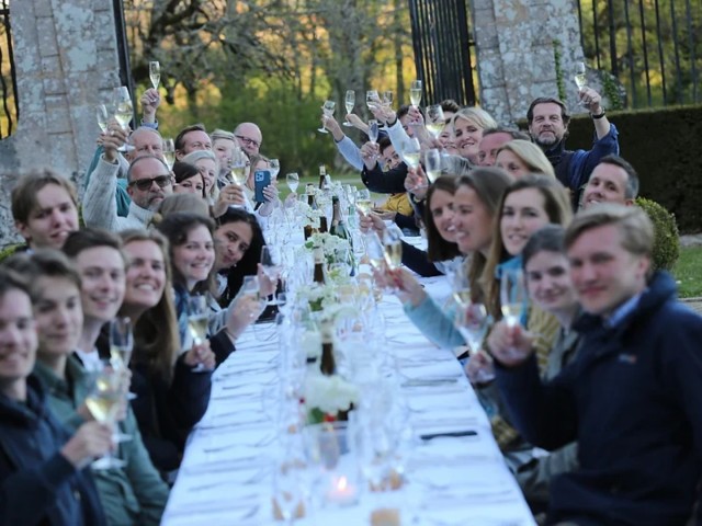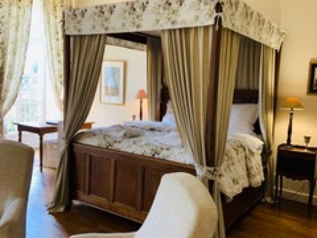 Het kasteel is geen hotel. Gasten delen het huis met de familie en de honden, de kat, de kippen en de pauwen.