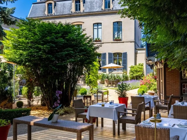 In een typisch Bourgondisch huis uit 1876, midden in het centrum van Beaune, is restaurant Clos du Cèdre gevestigd. Het huis behoorde ooit toe aan een meester-wijnmaker. Gasten worden er ontvangen in een elegante zaal met houten lambriseringen, lijstwerk en antieke parketvloeren. Bij mooi weer kunnen ze ook eten op het prachtige terras, in een groene omgeving.