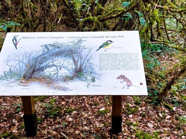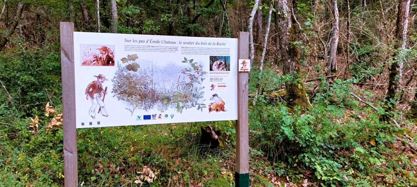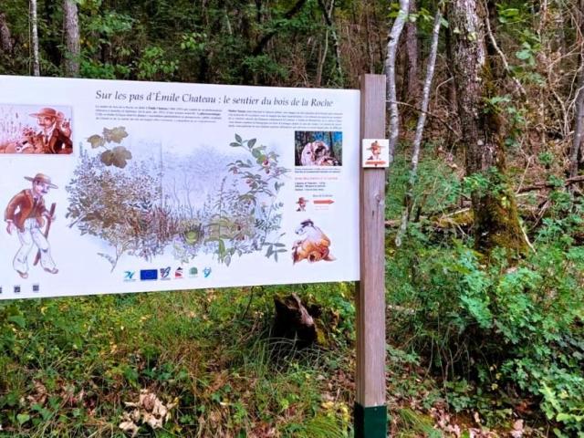 De wandeling van bijna vier kilometer voert door een landschap dat, door de vele korstmossen, soms een geheimzinnige sfeer krijgt. Onderweg geven talrijke informatieborden toelichting op de flora en fauna van het gebied, ondersteund door duidelijke tekeningen en uitleg. Zo krijgen wandelaars niet alleen inzicht in de rijke biodiversiteit van het Bois de la Roche, maar ook in het levenswerk van Émile Chateau.