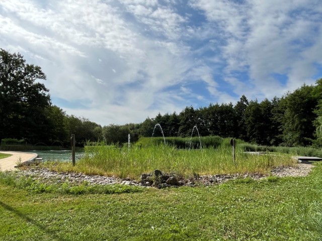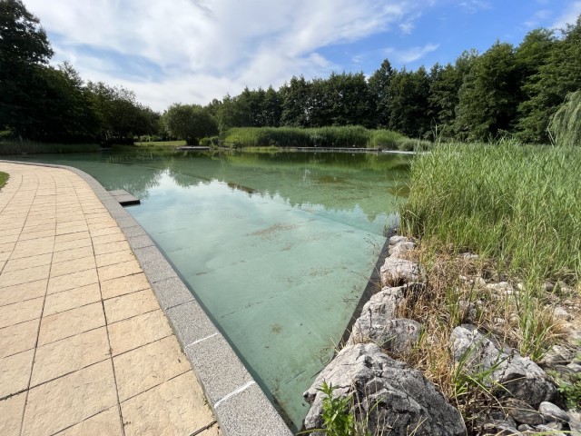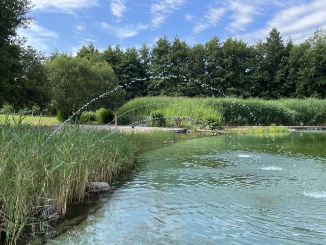 Het water wordt op volledig natuurlijke wijze gezuiverd. Skimmers zuigen het op en via pompen gaat het naar een filtratiegebied dat bestaat uit waterplanten. Vervolgens komt het via een overloopsysteem weer terug in het zwembad waar fonteinstralen zorgen voor een goede circulatie en oxygenatie.