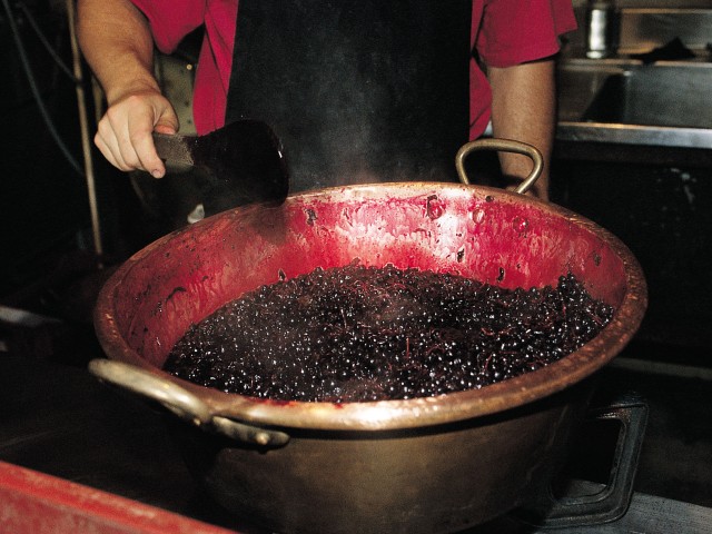 Daarvan maakt de familie jaarlijks, in grote koperen pannen, onder andere 12.115 potjes confituren. Ook de drank, 9.033 flessen per jaar (met en zonder alcohol) en de condimenten worden grotendeels in eigen keuken geproduceerd.