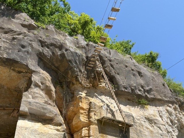 Een oude kalksteengroeve in de Yonne, waar bijna 1.000 jaar geleden stenen voor de basiliek van Vézelay werden uitgehouwen, is sinds 2004 ingericht als klimgrot. De opzet van deze locatie is uniek in Frankrijk en houdt het midden tussen Accrobranche (boomklimmen) en Via Ferrata (bergklimmen).