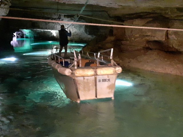 Het eerste deel van de rondleiding gaat te voet. Daarna staat er een boot klaar waarmee bezoekers dieper de grotten invaren over de kristalheldere ondergrondse rivier de Bèze. Onderweg kunnen ze genieten van de mooie concreties (stalactieten en stalagmieten) die nog beter tot hun recht komen door de feeërieke verlichting van de grotten.