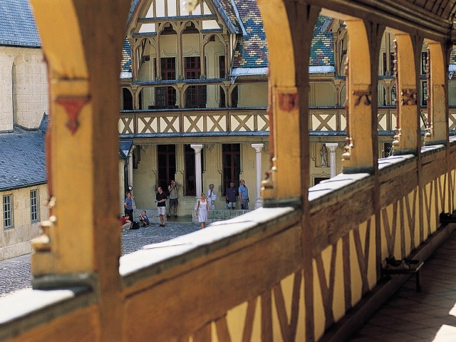 Het voormalige hospitaal, het Hôtel-Dieu des Hospices Civils de Beaune, is wereldberoemd vanwege de binnenplaats. Daar staat een markant gebouw in Vlaams-Bourgondische bouwstijl met vrolijk gekleurde geglazuurde dakpannen in geometrische motieven.