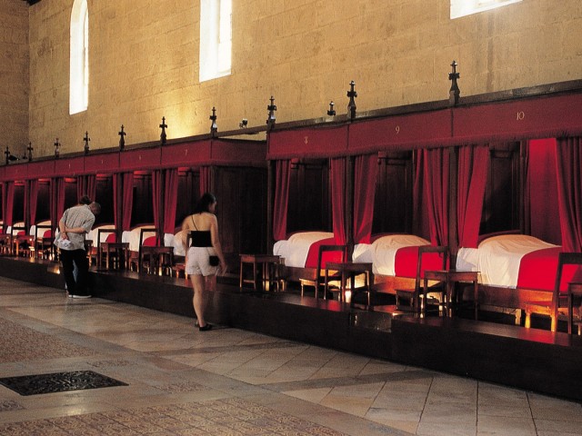 De zaal van de armen heeft indrukwekkende afmetingen. Hij is 50 meter lang, 14 meter breed en 16 meter hoog. De bedden aan weerszijden van de zaal, met rode wollen gordijnen, boden plek aan twee zieken. De kapel maakte deel uit van de ziekenzaal. Zo gingen religie en zorg perfect in elkaar over. Ook de oude apotheek, met 130 potten van aardewerk uit 1782, en de keuken zijn te bezoeken. Daar houdt “Messire Bertrand” al sinds 1698 toezicht terwijl hij zich over het spit ontfermt.