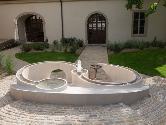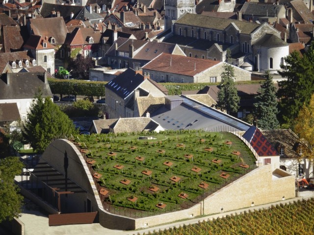 Het wijnhuis ligt aan de rand van Nuits-Saint-Georges en vormt een natuurlijke overgang naar het platteland. Op het koepelvormige dak is een tuin aangelegd; een nieuwe heuvel waardoor het gebouw perfect wordt geïntegreerd in de omgeving. Het ontwerp van de beplanting correspondeert met de gekleurde dakpannen van de kerktoren die er bovenuit steekt.