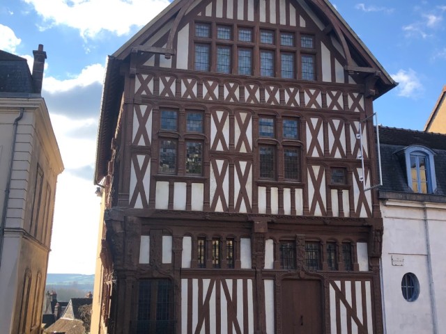 Van de Middeleeuwse stadsmuren staan nog enkele delen overeind. Ook het netwerk van kleine straatjes, met elkaar verbonden door nauwe passages of trappen, is behouden gebleven. De oude binnenstad is zeer compact: de meeste bezienswaardigheden liggen heel dicht bij elkaar. Zo zijn er de prachtige vakwerkhuizen uit de 16e eeuw, zoals het huis met de boom van Jesse, het huis van de deurwaarder en het huis met de zeven hoofden. Het huis van Pilori, ooit eigendom van een lakenkoopman, is versierd met emaillen tegels. De huizen zijn rijkelijk gedecoreerd met houtsnijwerk. De thema’s werden door de eigenaren gekozen al naar gelang hun beschermheilige, hun beroep of hun voornaam.