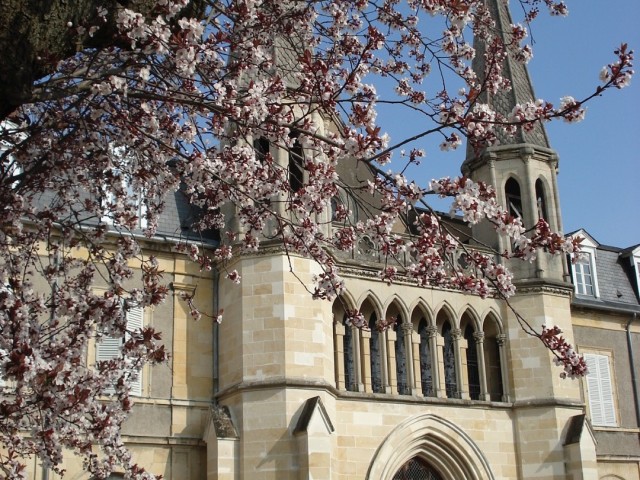 Het moederhuis van de zusters werd gebouwd op een heuvel, Saint-Gildard, net buiten de oude stadsmuren en destijds nog tussen de wijngaarden. Er stond nog een oude kerk van een priorij die hier eind 7e of begin 8e eeuw was gesticht. Van de priorij zelf was niets meer over.