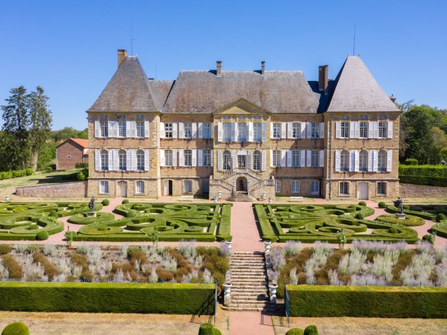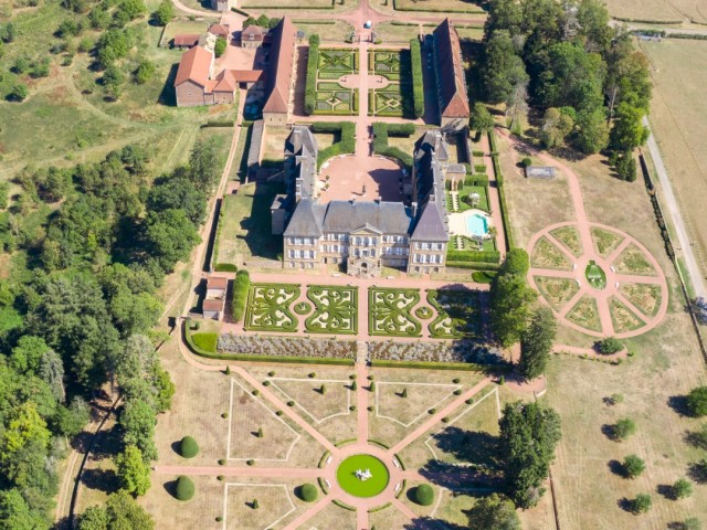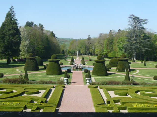 De tuinen liggen langs een centrale as op drie terrassen. Op het hoogste terras zijn 25.000 buxussen geplant om de broderieën te vormen. In totaal waren er 40.000 buxusplanten nodig om de tuin z’n oude glans terug te geven. Op het middelste terras zijn taxussen in vorm gesnoeid. Ze omringen een vijver met twee waternimfen. Op het derde terras is een groen tapijt aangeplant met een grote watervlakte waarin de gevel van het kasteel wordt weerspiegeld.