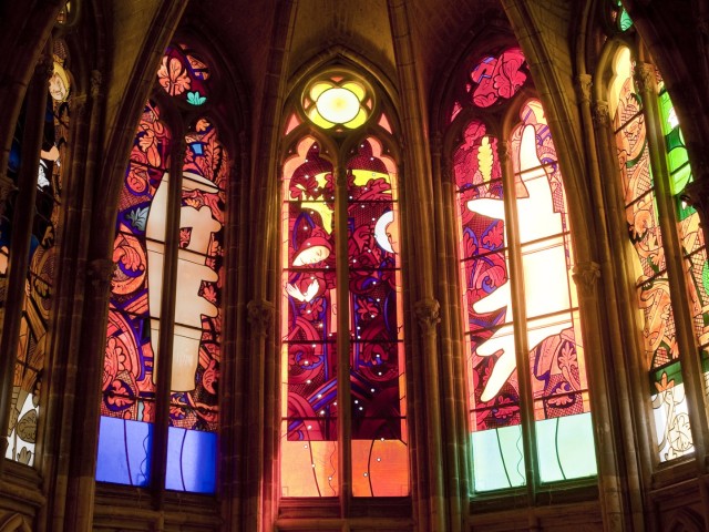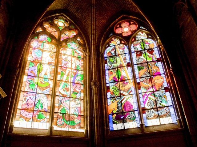 In de Tweede Wereldoorlog werd de kathedraal zwaar beschadigd door een bombardement. Inmiddels is hij volledig gerestaureerd. De moderne glas-in-loodramen, in totaal 130 vensters, beslaan een oppervlakte van 1.052 vierkante meter en vormen in Europa de grootste raampartij in zijn soort. Er is tussen 1977 en 2011 aan gewerkt door een aantal verschillende meester-glaswerkers.