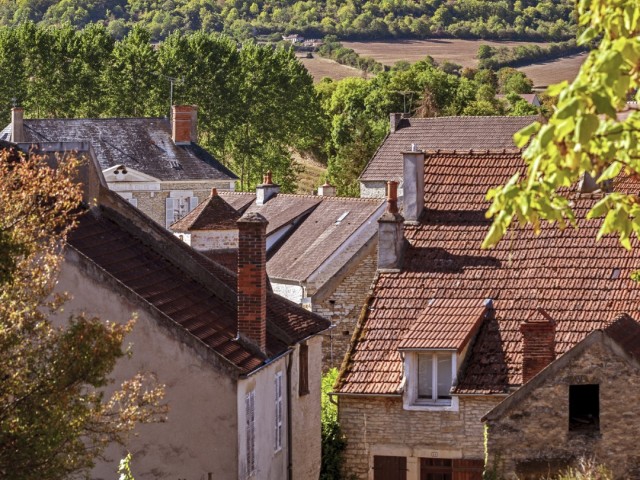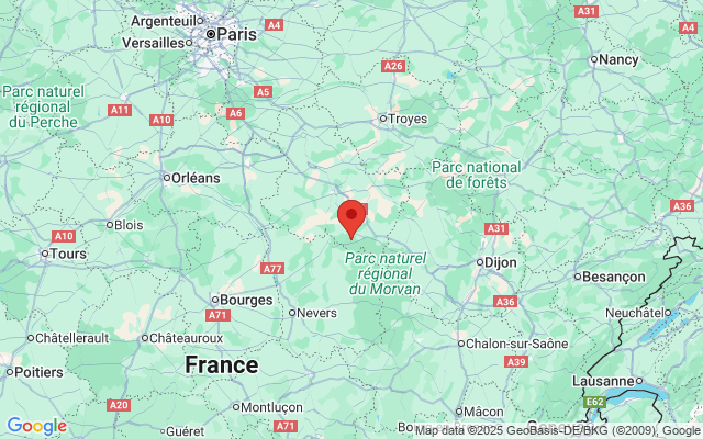 Het voorplein van de kerk, die op een klein heuveltje is gebouwd, biedt een prachtig uitzicht over de Vallei van de Cure en de verderop gelegen colline eternelle (eeuwige heuvel) met de basiliek van Vézelay.