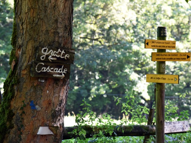 - Op de kruising (paal P35, waar route nummer 20 naar Cormot linksaf gaat. rechtsaf slaan. Loop omhoog, door een opening tussen de rotsen.
