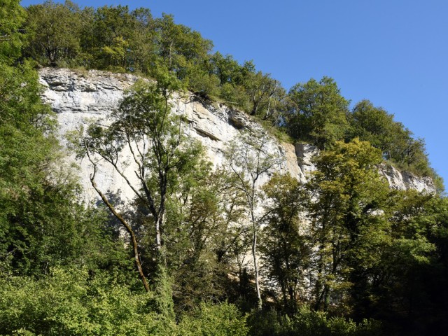 U loopt naar de Cormot klif die op sommige punten 40 meter hoog is. Deze rotswand is populair bij klimmers.