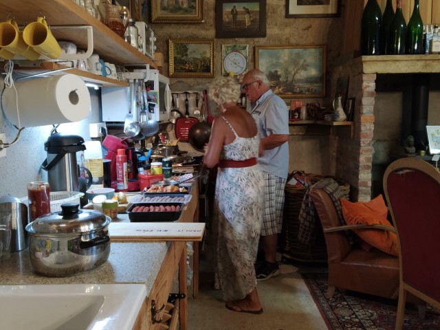 Jacqueline zorgt voor al het andere op deze plek zoals onderhouden van de kamers en de verhuur, de was en natuurlijk het eten niet te vergeten. Ze kook ook voor de gasten. We hebben een flinke moestuin en daar komen veel groenten en fruit vandaan.