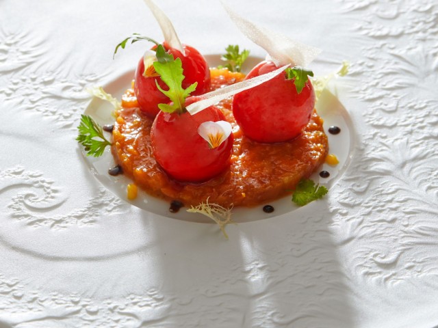 De sterrengerechten die uit zijn keuken komen, worden geserveerd in een verfijnde en intieme setting. Echtgenote Nathalie heeft de supervisie over smaakvolle en elegante eetzaal die in lichte tinten werd ingericht.