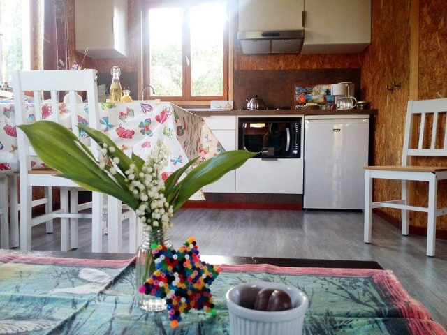 Vier basic vakantiehuisjes, waarvan er één is aangepast voor rolstoelgebruik, met genoeg comfort voor een aangenaam verblijf.