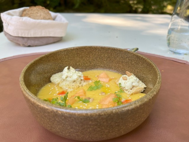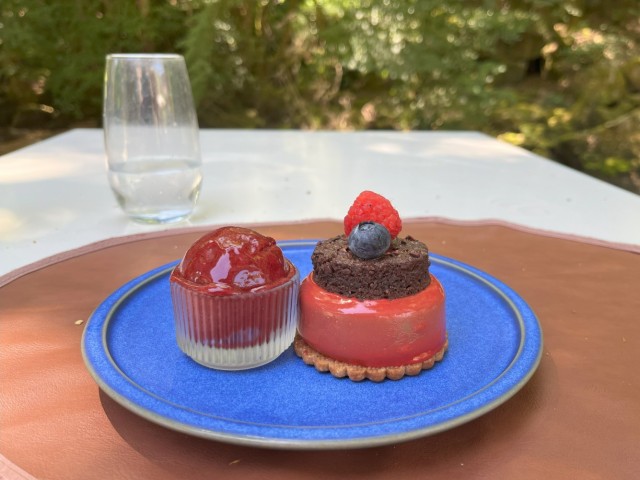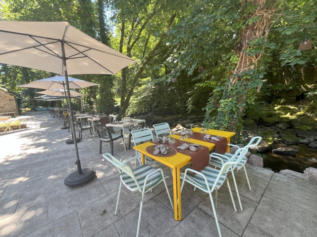 De gasten eten er middenin de natuur. Bij mooi weer worden ze ontvangen op het grote schaduwrijke terras langs de Cousin en anders in het restaurant met een panoramisch zicht op het riviertje en het bos.