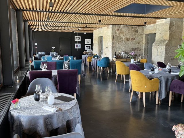 De gasten worden ontvangen in de hypermoderne uitbouw van Corten staal uit 2019 en bij mooi weer op het terras dat door een haag van lavendel en perovskia wordt afgescheiden van de weg.