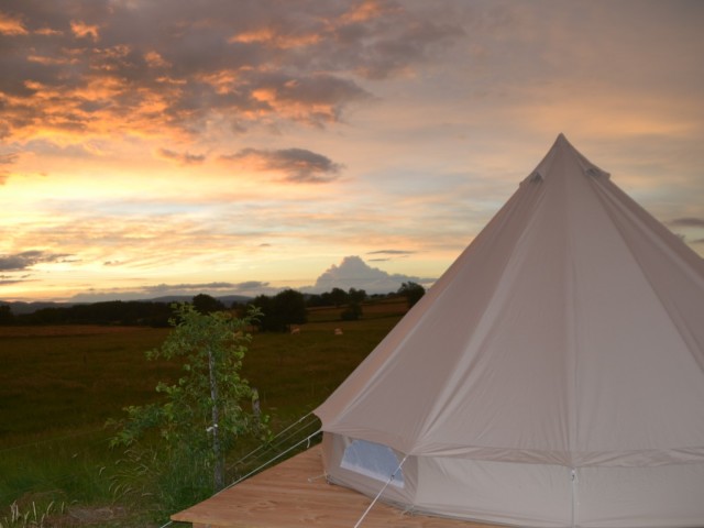 De tent is uitgerust met een tweepersoonsbed , elektra, koffiezetapp. waterkoker koelkast en sfeervolle verlichting. Er is serviesgoed en een buitenkeuken. Voor de tent heb je een eigen terras met zitje met geweldig uitzicht op de Mont Beuvray en Haut Folin. Je zou het liefst heerlijk in je bed willen blijven liggen om heel lang van dit uitzicht te kunnen genieten.