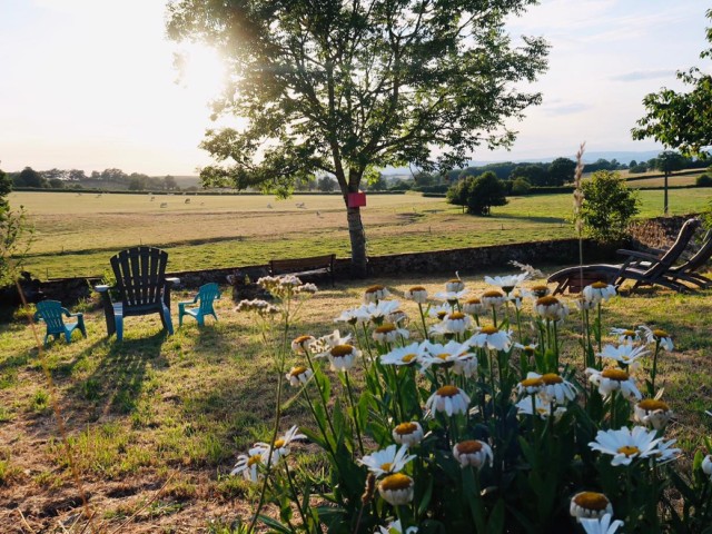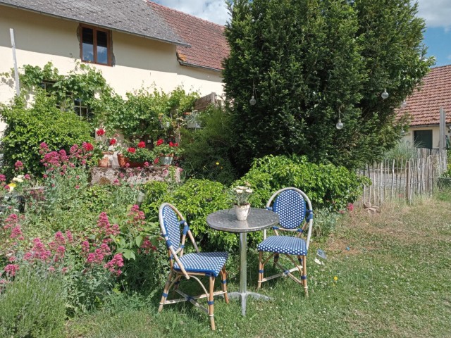 Vanuit de gîte heeft u een prachtig uitzicht op het coulissen-landschap van de Morvan. U beschikt over een zonnig privé terras waar u ook kunt genieten van dit prachtige uitzicht, waar iedere avond weer een spectaculaire zonsondergang te zien is. U kunt hiervandaan de bergen van de Mont Beuvray en Haut Folin zien liggen.