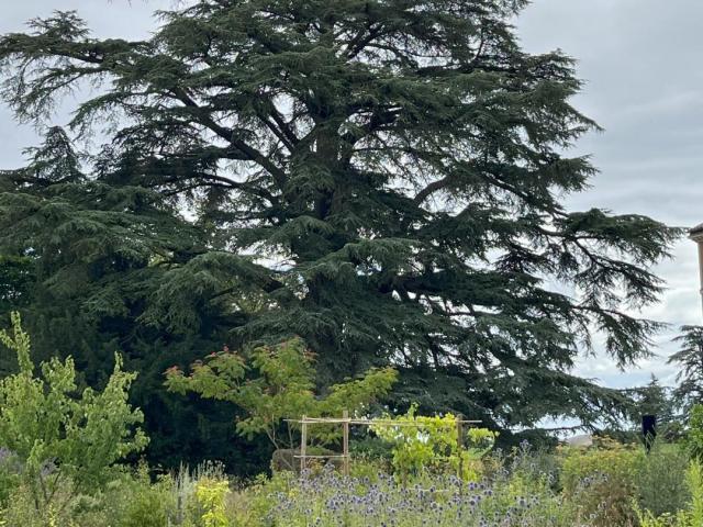 Rechtdoor gaat, vanaf de parking, een laan met bloemen en fruitstruiken naar de vijvers van het kasteel. Rechts voert een pad tussen de voedselbomen en -struiken naar de Moestuin van de Toekomst. Het pad is genoemd naar de majestueuze ceder die er in 1757 werd geplant. In de moestuin zijn, tussen de granaatappel-, amandel- en pistachebomen, open plekken waar de groentes goed gedijen. Ze mogen er zich vrij en ongeremd ontwikkelen.