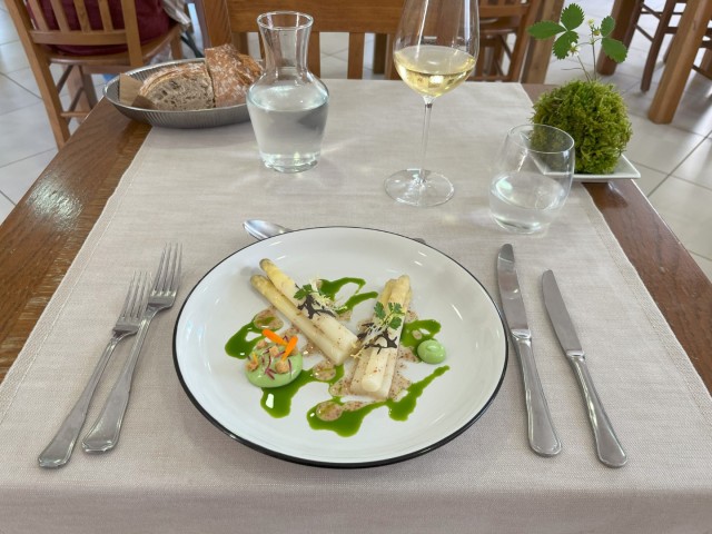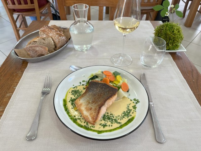 Op één van de gevels is nog de oude naam van het restaurant, Auberge de la Gare, zichtbaar. Nu heet het Les Murisaltiens. Zo worden ook de inwoners van Meursault genoemd. De grote metalen slak voor de ingang, benadrukt dat de producten van de Côte-d’Or er op tafel komen. Takashi Kinoshita is immers een ambassadeur van dit departement.