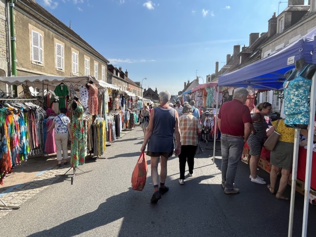 Elke tweede dinsdagochtend van de maand staat de Champ de Foire, het grote veld naast de plaatselijke supermarkt, vol met kramen: kleding, hoeden, snuisterijen, plantjes, groenten, fruit, kruiden, kazen en andere lekkernijen. Maar het is er ook mogelijk om messen en gereedschappen te laten slijpen. En zoals op veel Bourgondische markten is er tevens pluimvee en ander gevogelte te koop. Vanaf het veld gaat de markt verder het dorp in, via de Rue des Boucheries, tot aan het plein voor het gemeentehuis.