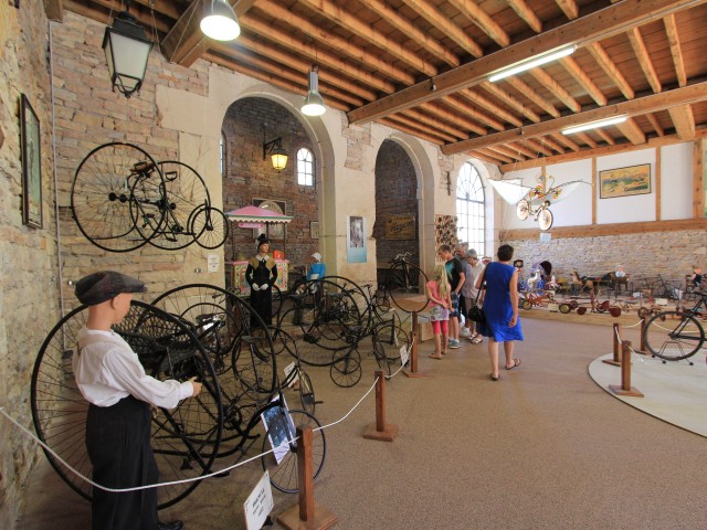 Michel Grézaud heeft een leuke collectie opgebouwd van fietsen uit de afgelopen twee eeuwen. Die begint met de allereerste generatie fietsen: de Draisiene, ofwel Vélocipède, die in 1817 door de Duitse baron Karl Von Drais werd uitgevonden. Ook de 19e-eeuwse Grand-Bi, met het hoge voorwiel (1,30 meter) en het kleine achterwiel (30 centimeter) maakt deel uit van zijn collectie.