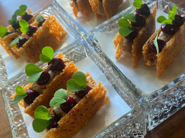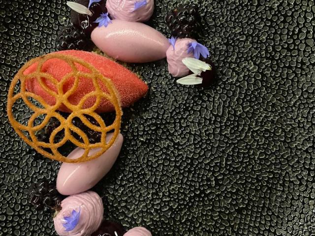 De signature dish van Dennis Willems is een risotto op basis van graan en morilles. Die stond in Koudekerke ook al op de kaart. Dat geldt eveneens voor de Beet Wellington, een mooi en heerlijk vegetarisch gerecht dat is geïnspireerd op de klassieke Beef Wellington. Het is een fraai bewerke bolletje van deeg, gevuld met rode biet, snijbiet en paddenstoelen. De smaak is hartig en vol umami.