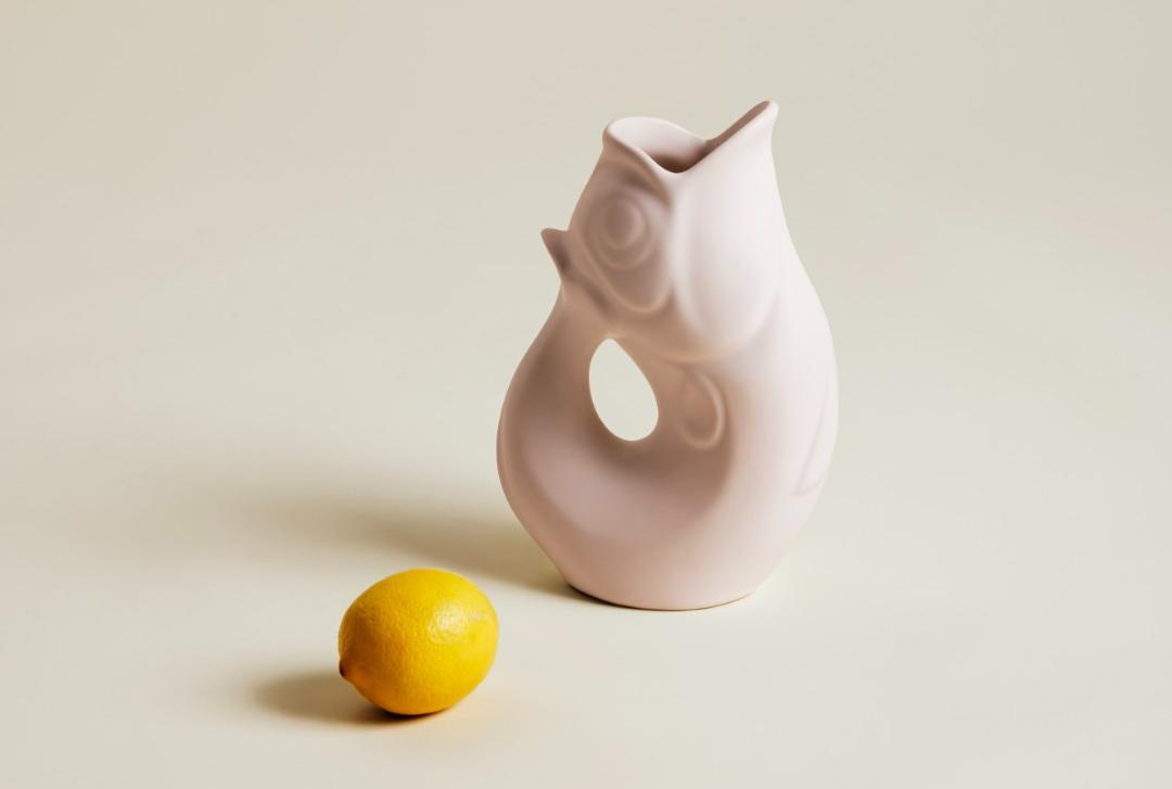 De Glouglou karaf heeft de vorm van een vis en maakt bij het uitschenken van water een grappig gorgelgeluid. Dat ontstaat door de luchtbel die dan via de staart ontsnapt. Met dat geluid onderscheidt hij zich van imitaties. Behalve om water te serveren, doet hij ook dienst als vaas, houder van keukengerei en decoratieobject.