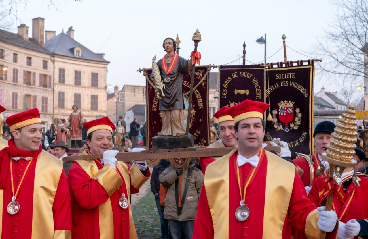 Sinds de middeleeuwen vereren de wijnbouwers Vincentius als patroonheilige. Ze komen jaarlijks op of rond 22 januari bij elkaar voor een mis en een processie ter ere van hun heilige. Aansluitend wordt er gegeten en natuurlijk ook gedronken. De traditie wil dat het beeld van Saint-Vincent elk jaar naar een andere wijnboer verhuist: na afloop van de mis wordt het in processie naar het nieuwe onderkomen voor dat jaar gebracht. Degene die het beeld dan ontvangt, wordt geacht om dan zijn wijnkelder te openen en de deelnemers aan de processie mee te laten drinken.