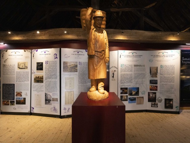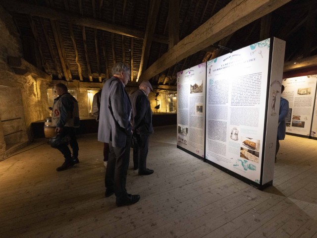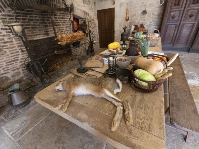 De expositie over deze gastronoom is in de voormalige slaapzaal van de monniken, de kleine kelder en in de oude keuken van het kasteel waarvan de inrichting voor deze gelegenheid is geïnspireerd op de keuken van het landhuis van Brillat-Savarin in Vieu-en-Valromey. Er is een reconstructie gemaakt van zijn moestuin. Tevens wordt een authentieke gietijzeren pan uit de 18e eeuw van hem getoond die geldt als één van de eerste pannen voor snel koken onder druk. Zestien grote panelen, stillevens en manuscripten bieden inzicht in het leven van deze bekende gastronoom en zijn geschriften.