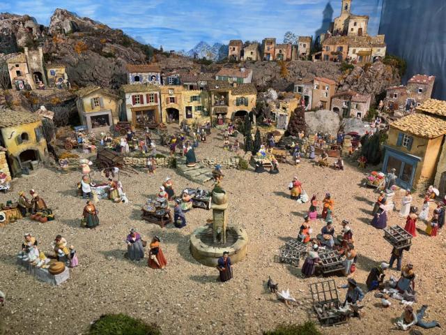 Typisch voor een Provençaalse kerststal zijn de santons (kleine heiligen), de handgeschilderde beeldjes uit die streek. Arlette Bertello uit Arles en Philippe Albertini uit Bastia werkten twee weken aan de inrichting van de stal in de Bourgondische abdij. Arlette verzamelde in ruim 50 jaar meer dan 3.000 handgemaakte santons. De meeste exemplaren zijn uniek. Philippe is gespecialiseerd in het vervaardigen van de gebouwen: molens, schaapskooien, winkels, boerderijen en hutten.