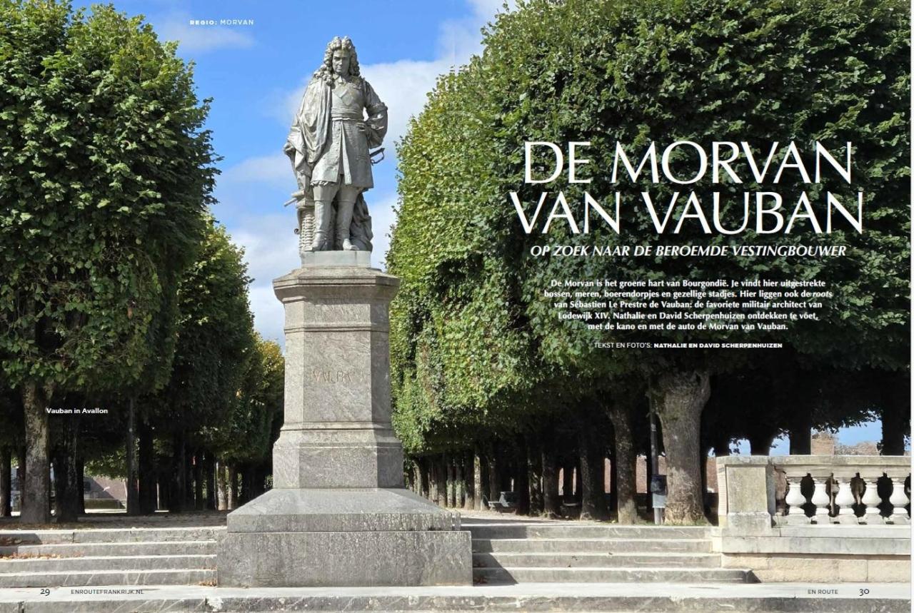 In de zojuist verschenen uitgave van En Route krijgt het groene hart van Bourgondië veel aandacht. Hoofdredacteur Michiel Bom wandelde door de Morvan en ontdekte daar een aantal bijzondere verhalen. Journaliste Nathalie van Koot volgde samen met haar partner, fotograaf David Scherpenhuizen, de voetsporen van de 17e-eeuwse militaire architect Vauban.