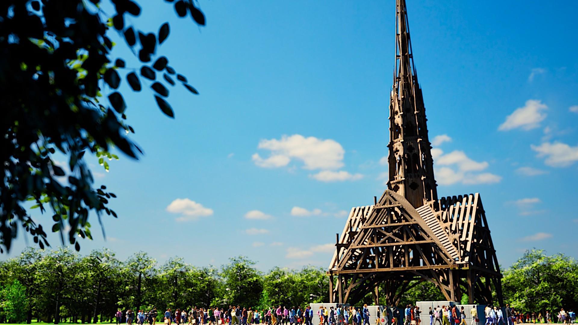 Het is een ambitieus toeristisch project, opgezet door een ondernemer die voorheen een timmerbedrijf in La-Charité-sur-Loire leidde. Meteen na de grote brand van 15 april 2019, die de torenspits en het dak van de Notre-Dame vernietigde, richtte hij de vereniging Restaurons Notre-Dame op om te strijden voor restauratie van de oude torenspits en tegen een ander, eigentijds, ontwerp. Op 7 december 2024 was de restauratie gereed en werd de heropeningsceremonie gehouden.
