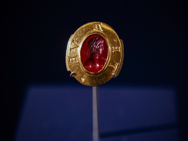De zegelring heeft een Sardonyx met de afbeelding van Herakles. In de gouden cirkel eromheen is de Latijnse groet A VE TE gegraveerd. Volgens het Centre des Monuments Nationaux, dat de abdij beheert, is de ring meer waard dan de zilveren en gouden munten samen. In het een artikel in National Geographic zegt Vincent Borrel, onderzoeker bij AOrOc (Archéologie & Philologie d’Orient et d’Occident), dat de eigenaar van de schat hiermee drie tot acht paarden kon kopen wat vergelijkbaar is met drie tot acht auto’s in de huidige tijd.