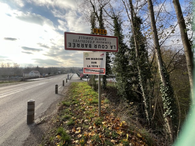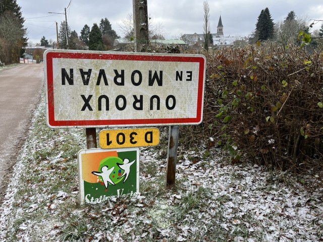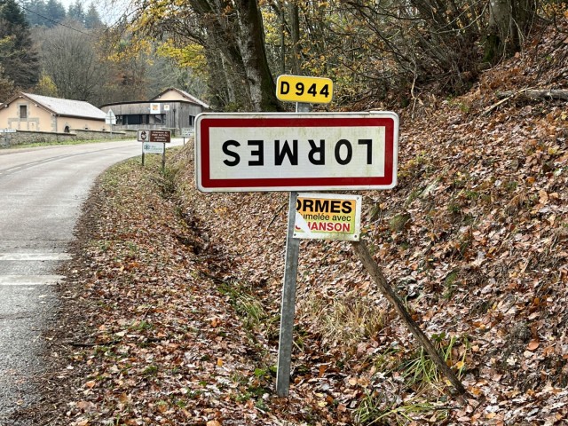 Bij de ingang van veel dorpjes en steden in Bourgondië staan, net als elders in Frankrijk, de plaatsnaambordjes op hun kop.