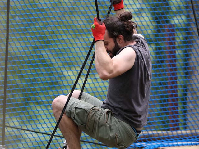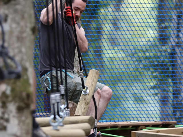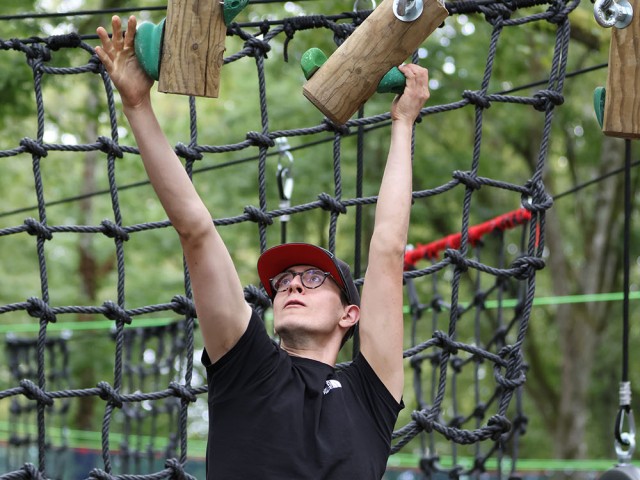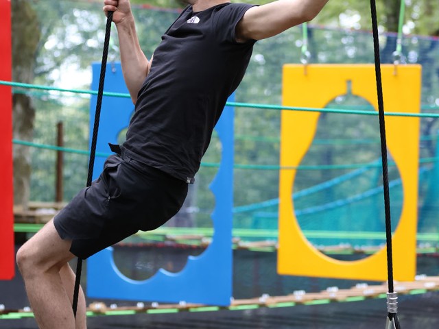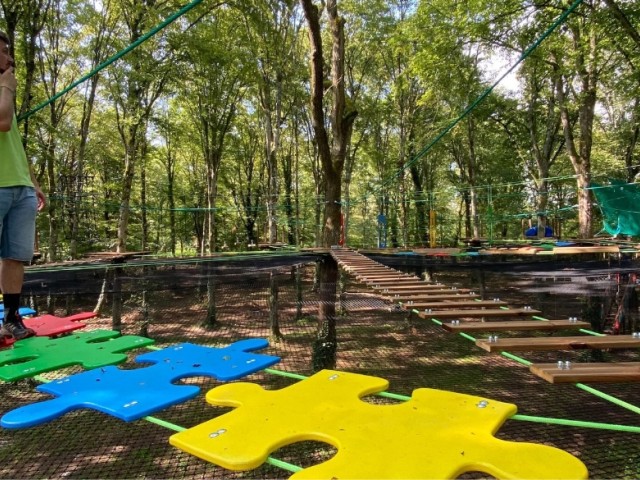 Op een hoogte van zes meter is een parcours met zo’n 80 uitdagingen in vier verschillende moeilijkheidsgraden uitgezet. Het is inclusief glijbaan, ziplijnen, loopbruggen, hangbruggen en andere hindernissen. Het net hangt daar zo’n 30 centimeter onder om bezoekers op te vangen als ze vallen.