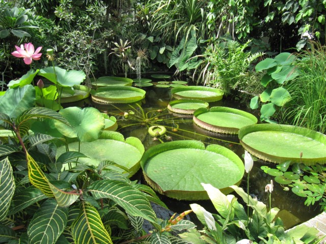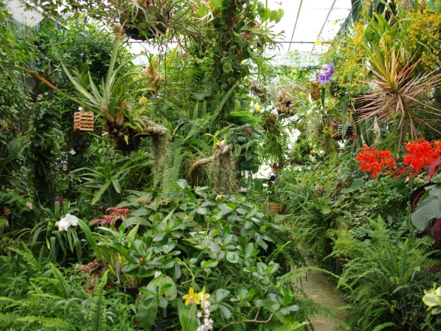 De tropische serres (600 m2) tonen een verzameling van 1.500 exotische planten uit verre landen waaronder vanille-orchideeën, peperboompjes, ananasplanten, bananenbomen, en sinaasappelbomen. Maar er zijn ook cactussen en vleesetende planten te zien, alsmede de fotogenieke reuzenwaterlelie Victoria Cruziana. De serres zijn bedoeld om bezoekers bewust te maken van de enorme biodiversiteit aan planten en het belang om die in stand te houden.
