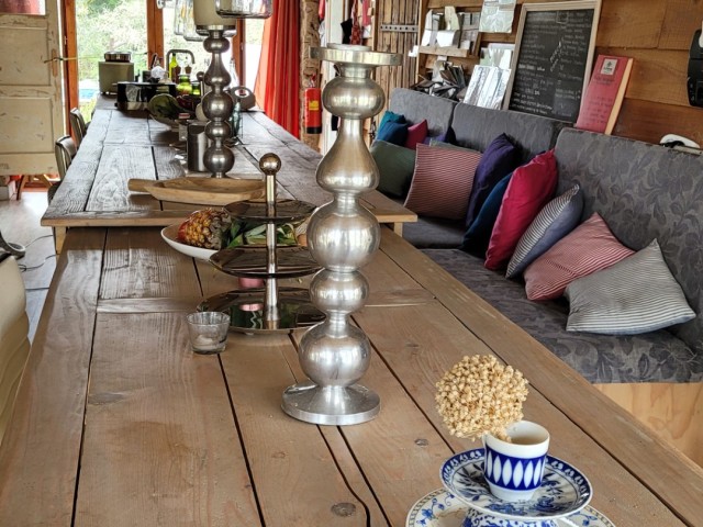 De gasten eten er gezellig aan een lange tafel of, bij mooi weer, op het terras in de binnentuin. Hoewel de gastvrouw geen speciale koksopleiding heeft gevolgd, kookt zij al haar hele leven. Voordien had ze een foodtruck in bijberoep met hamburgers. De ketchup en andere sauzen, garnituren werden allemaal huisgemaakt.Over de middag kan men een kleine kaart van snacks raadplegen zoals een croque monsieur, een frisse salade, broodjes met beleg etc... 's Avonds kan men ervoor kiezen al dan niet mee te eten.