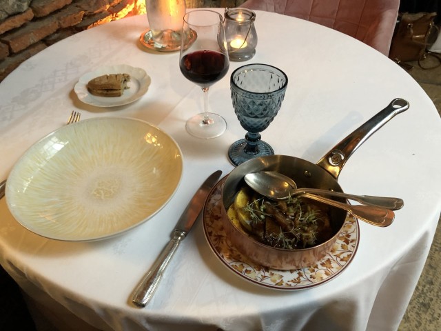 Het restaurant bevindt zich op een voormalige binnenplaats. Die is met glas overkapt en ingericht als wintertuin. De tafels zijn netjes gedekt en veel gerechten worden in koperen pannetjes geserveerd. Vanuit het restaurant kunnen de gasten direct in de keuken kijken. Daar wordt vooral met lokale ingrediënten gekookt. Eieren staan er het hele jaar op het menu. Oeufs en Meurette is daarentegen een typisch gerecht voor de winter.