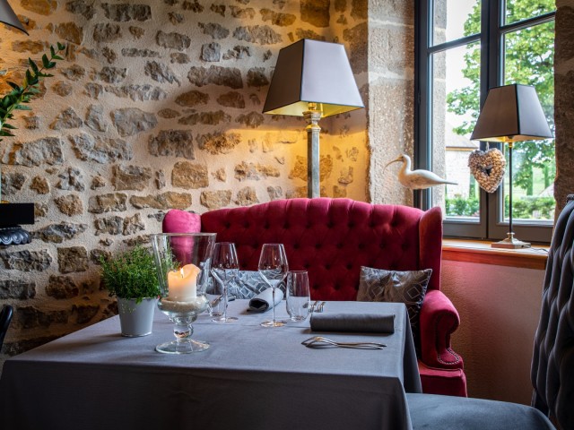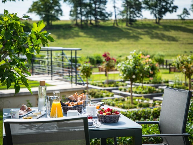 Het meer en de stallen leveren, samen met de boomgaard, de moestuin en de kruidentuin van het domein de ingrediënten voor het menu: rundvlees (Charolais, Aubrac en Wagyu), varkensvlees (Gasconne, Wolvarken), lamsvlees, kip, (Bresse) kalkoen, konijn, parelhoen, eend, snoekbaars… Het domein heeft zelfs een broedplaats voor blauwe (Bretonse) kreeft.